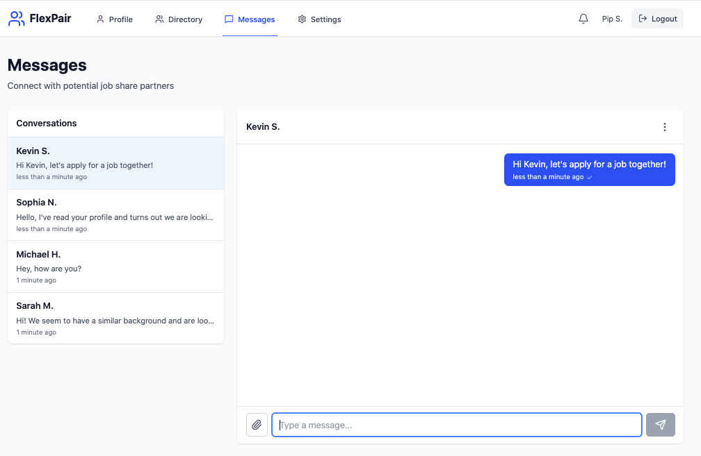 Match with someone, start chatting, apply for jobs together OR perhaps an employer using FlexPair will reach out!